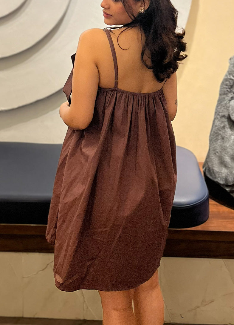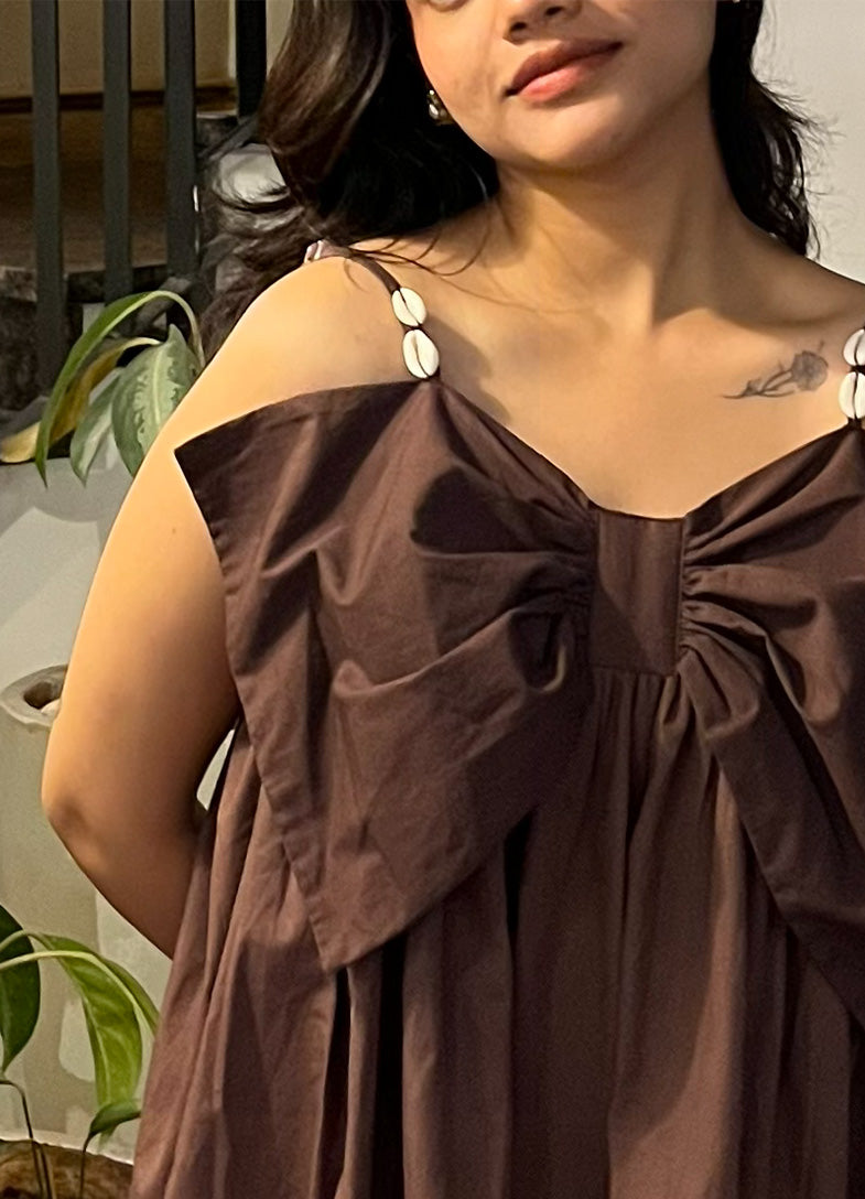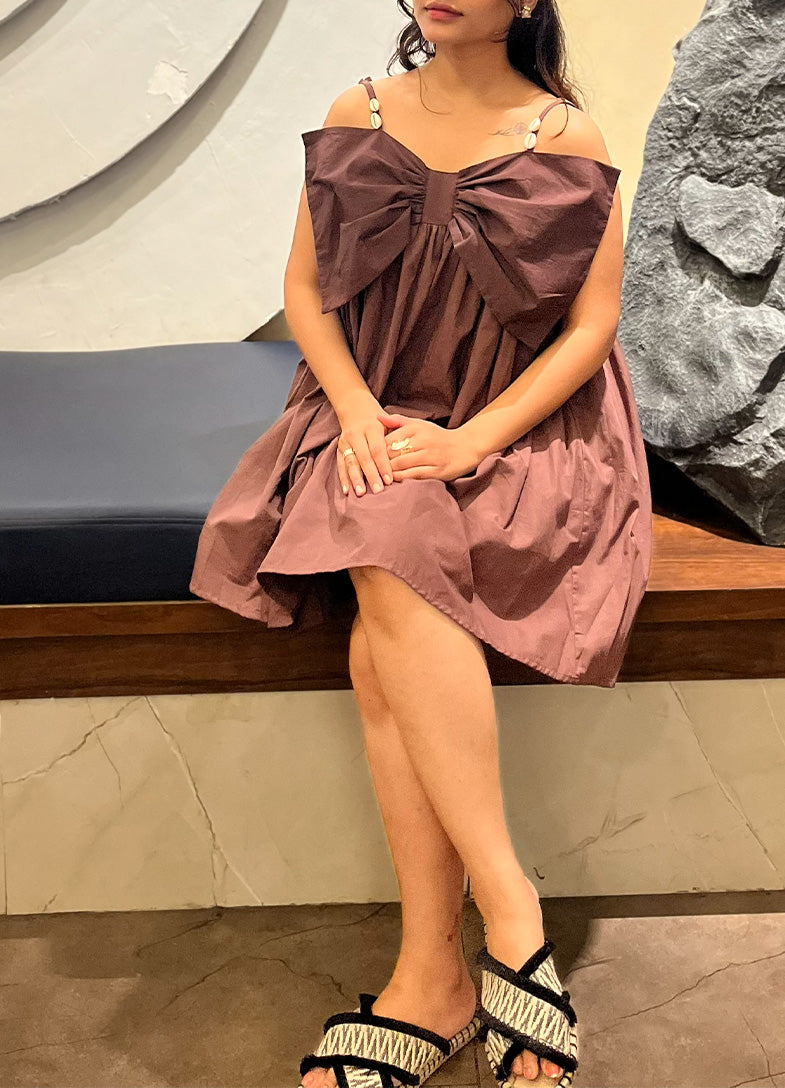 Sweet, soft, and effortlessly chic — the Brown Sugar Dress is crafted for those who love playful silhouettes with a luxe twist. Its oversized bow front and soft cotton drape make it a head-turner for brunches or night outs.