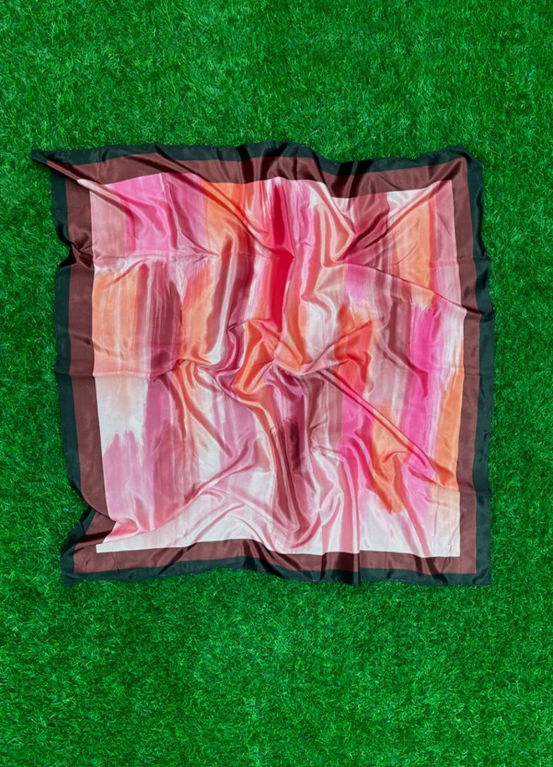 A square scarf in a contemporary brush strokes digital print. Best styled with solid dresses or used as a trendy bag accessory for a polished look.