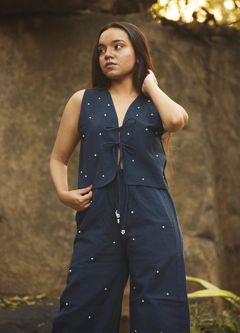 A refined choice for any occasion, this sleeveless top features pearl detailing and a flattering V-neckline. With its relaxed fit, it's designed to bring both comfort and elegance into your wardrobe.