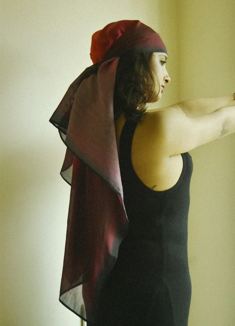 A stylish square scarf in digital print. Best paired with solid outfits or used as a chic bag accessory for a soft, elegant finish.