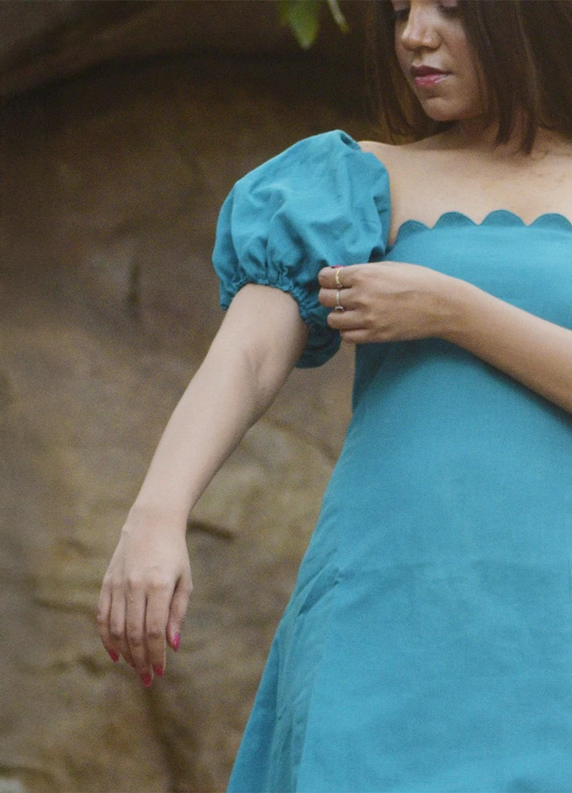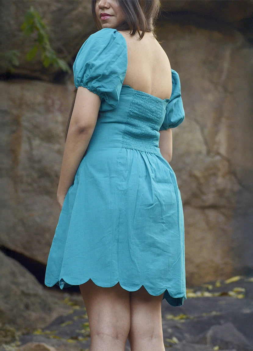 Featuring scallop details at the bust and hemline, this feminine dress is designed with a smocked back for comfort and fit. It also comes with detachable sleeves — so you can switch up your look effortlessly.